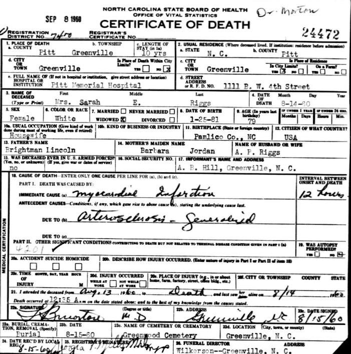 | Lincoln, Mary A. | w | f | 21 | wife | m | Keeping house | yes/no | NC | NC | NC | Sickness/Disability - Neuralgia | ||