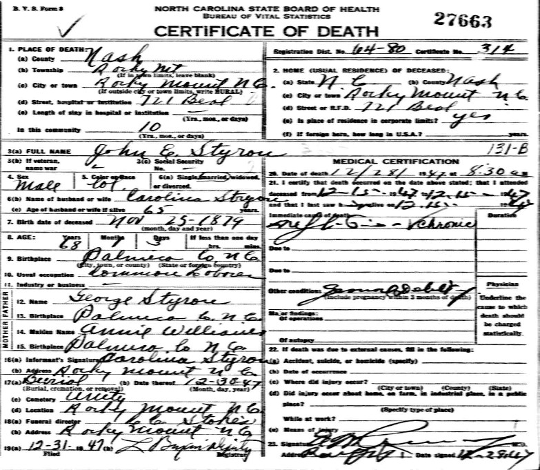 | Stion, John E. | b | m | 3 | son | s | no | NC | NC | NC | Death Certificate | |||
