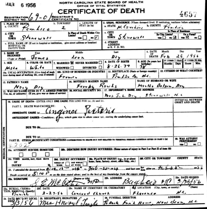 | Day, James L. | w | m | 2 | son | s | no | NC | NC | NC | Death Certificate | |||