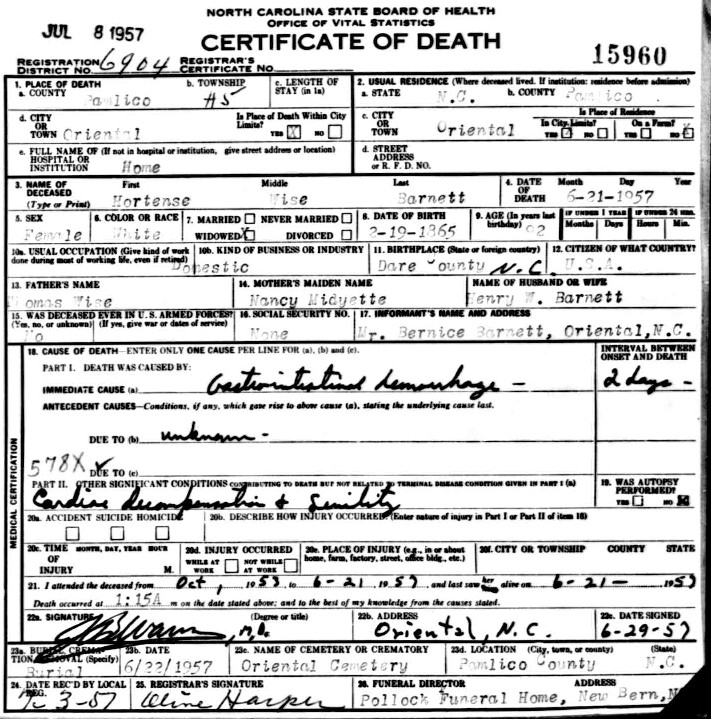 | Wise, Autence [Hortense] | w | f | 15 | grandchild | s | NC | NC | NC | Death Certificate | ||||