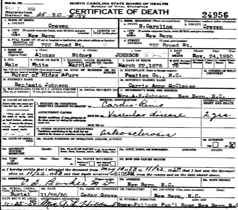 | Johnson, Alonzo S. | w | m | 5 | son | s | At school | no | NC | NC | NC | Death Certificate | ||
