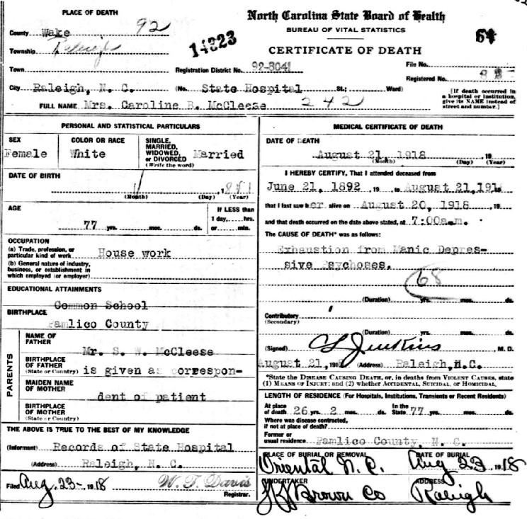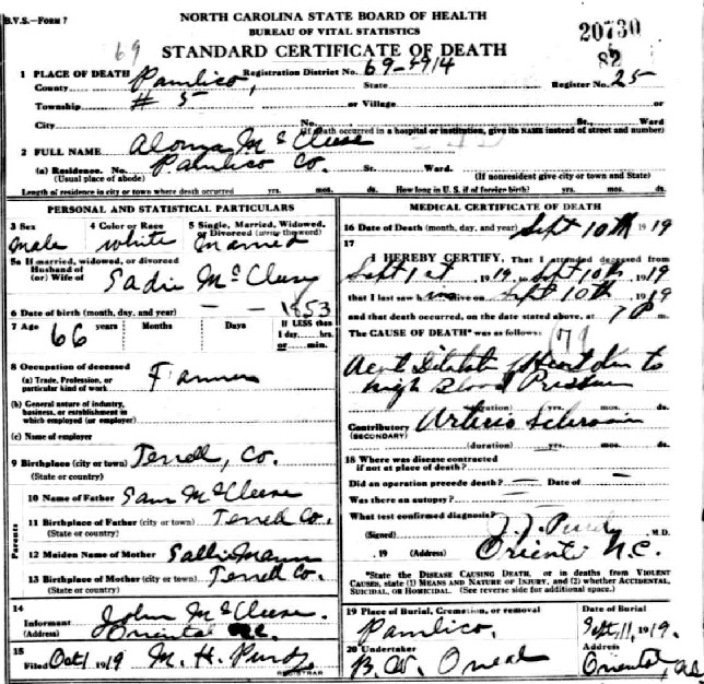| McClees, Carra B. | w | f | 39 | wife | m | Keeping house | NC | NC | NC | Death Certificate | |||