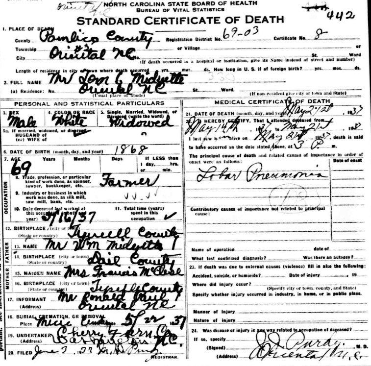 | Midyett, Thomas C. | w | m | 11 | son | s | Works on farm | no | NC | NC | NC | Death Certificate |