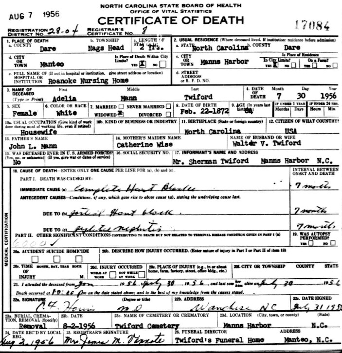 | Mann, Adelia | w | f | 9 | daughter | s | At school | no | NC | NC | NC | Death Certificate | ||