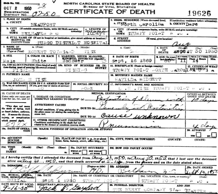 | Wise, Robert | w | m | 12 | son | s | Works on farm | NC | NC | NC | Attended school within the year; Death Certificate; Tombstone | |||