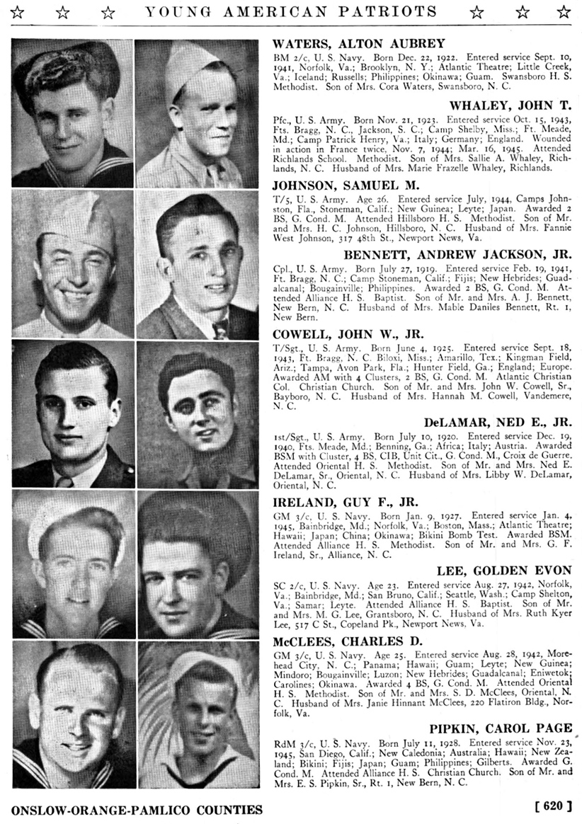 Young American Patriots of WW II from Pamlico County[John W. Cowell, Jr. - Garlon M. Watson]