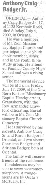 (Sun Journal [New Bern, NC] – Saturday, Feb. 7, 2009)