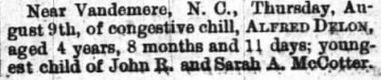 Joshua L. McDonald, 17, April 5. Funeral 4 p.m., today, Pamlico County High School Auditorium. Burial, Harper Cemetery. Arrangements by Bryant Funeral Home, Alliance. (The News & Observer [Raleigh, NC] - April 8, 2003; pg. B9)