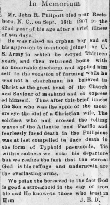 Trixie Rowe Potter, 98, of Grantsboro, died Tuesday, July 9, 2013 at Grantsbrook Nursing & Rehab Center. She was a member of Mt. Zion FWB Church and was retired from the cafeteria of Pamlico County Middle School. She was predeceased in death by her husband, Virgil R. Potter, one grandson, Hal Potter, Jr. and son-in-law, Bruce Brooks. She is survived by three sons, Virgil Potter, (Sandy) of Bayboro, Larry Potter, (Linda) of Bayboro, Hal Potter, (Linda) of Bayboro; three daughters, Della Carawan, (Bill) of Burlington, Linda Brooks of Alliance, Janice Daniels, (Harvey) of Alliance; one sister-in-law, Selma Rowe of Bayboro; fourteen grandchildren; twenty five great-grandchildren and six great-great-grandchildren. A funeral service was held at Friday, July 12 at Bryant Funeral Home Chapel with the Rev. Mike Roach and Rev. Bob Yates officiating. The family received friends prior to the service at the funeral home. Arrangements by Bryant Funeral Home and Crematory, Alliance. (The Pamlico News [Oriental, NC] - July 17, 2013)