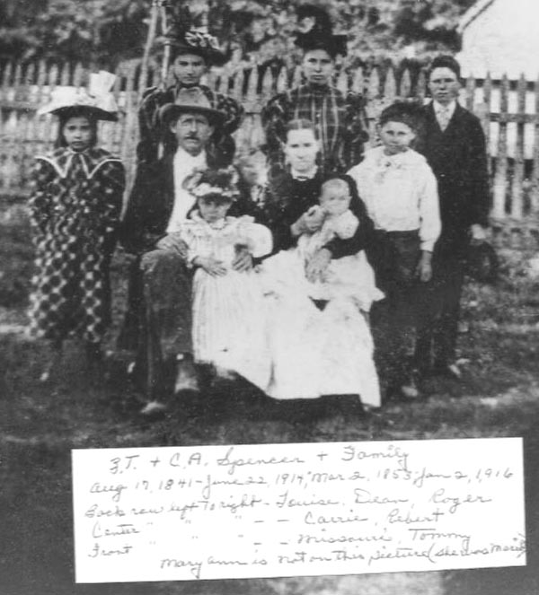 "Dean" (1877-1971); Roger Lee (1882-1984) Mary Ann Spencer (1874-1918) was their oldest child and was not in this picture because she had married in 1890 to Isaac H. Swindell. This photo was submitted by Rick Spencer, great-grandson of Zachariah & Cordelia. |