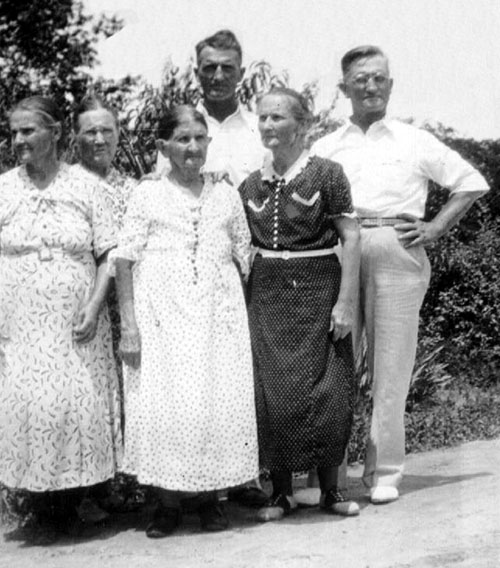| Left to Right: Ida Pauline Edwards (1880-1979), Mary Salina Edwards (1875-1965) Nancy (Leary) Edwards (1850-1943), McClendon Edwards (1891-1971), Emma Edwards (1882-1936) and William Howard Edwards (1888-1977) |