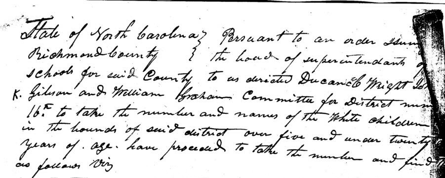 of Richmond County, NC. Ages of 'scholars' are said to be over 5 and under 21 yrs. of age. This