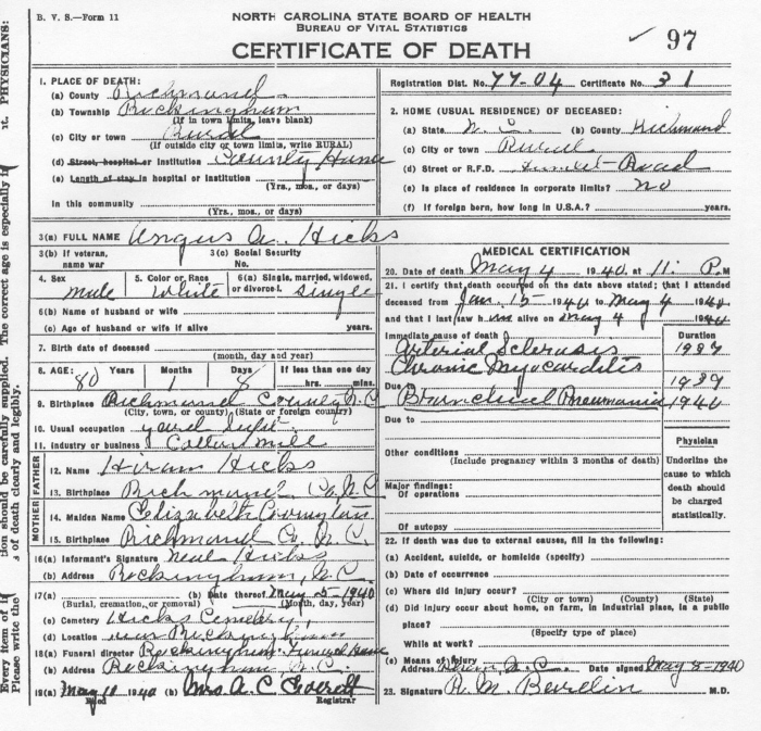 County Home Residents Buried Potters Field Return to Hicks Cemetery Return to What's New in Richmond County Return to Richmond County Home Page