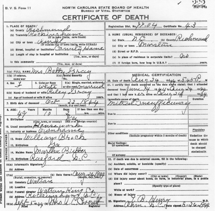 County Home Residents Buried Potters Field Return to Watson Cemetery Return to Richmond County Home Page
