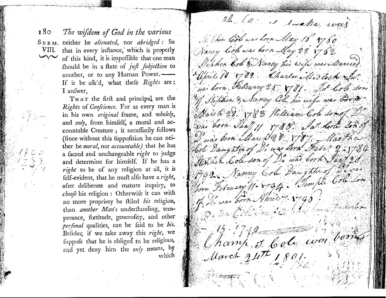 Jn. Cole Son of Stephen & Nancy Cole his wife was born March 28 1783