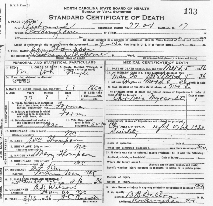 County Home Residents Buried Potters Field Return to Mary Love Cemetery (pg. 6) Return to What's New in Richmond County Return to Richmond County Home Page