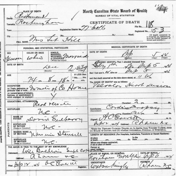 Celestia 'Let' Sedberry, d/o David Sedberry & Nannie Stansill; w/o Simeon Hill