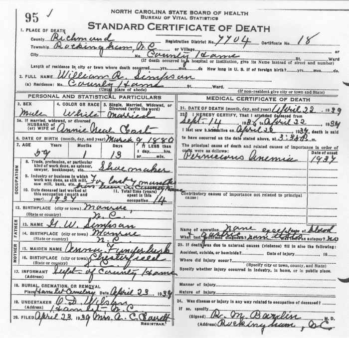 County Home Residents Buried Potters Field Return to Mary Love Cemetery (pg. 5) Return to What's New in Richmond County Return to Richmond County Home Page