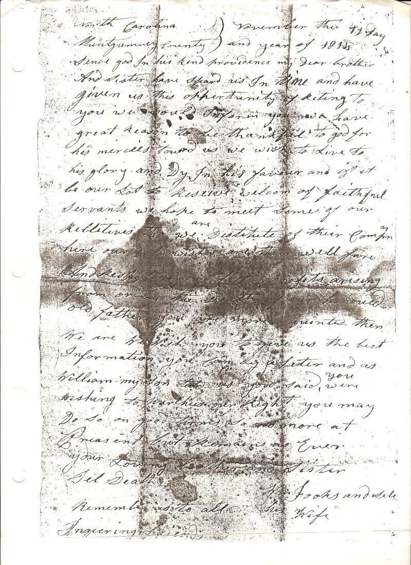 Translation of 1812 Letter from William Fooks to Cornelius Grider, whose father, Archibald, is listed in the census of Burke County, ca 1790. |