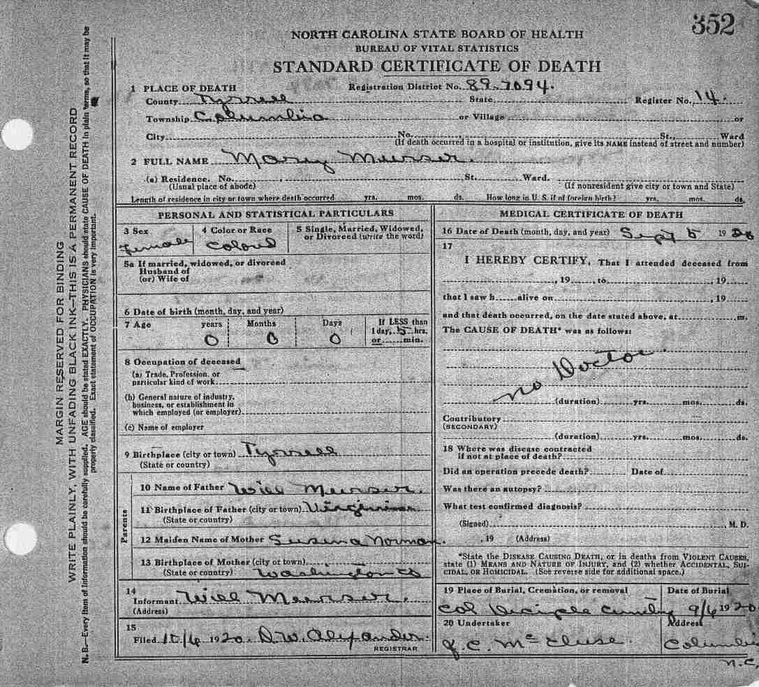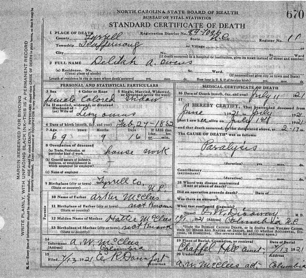 | Owens, Hopsia | Maiden | Mother | 1919 | 1 | 637 |