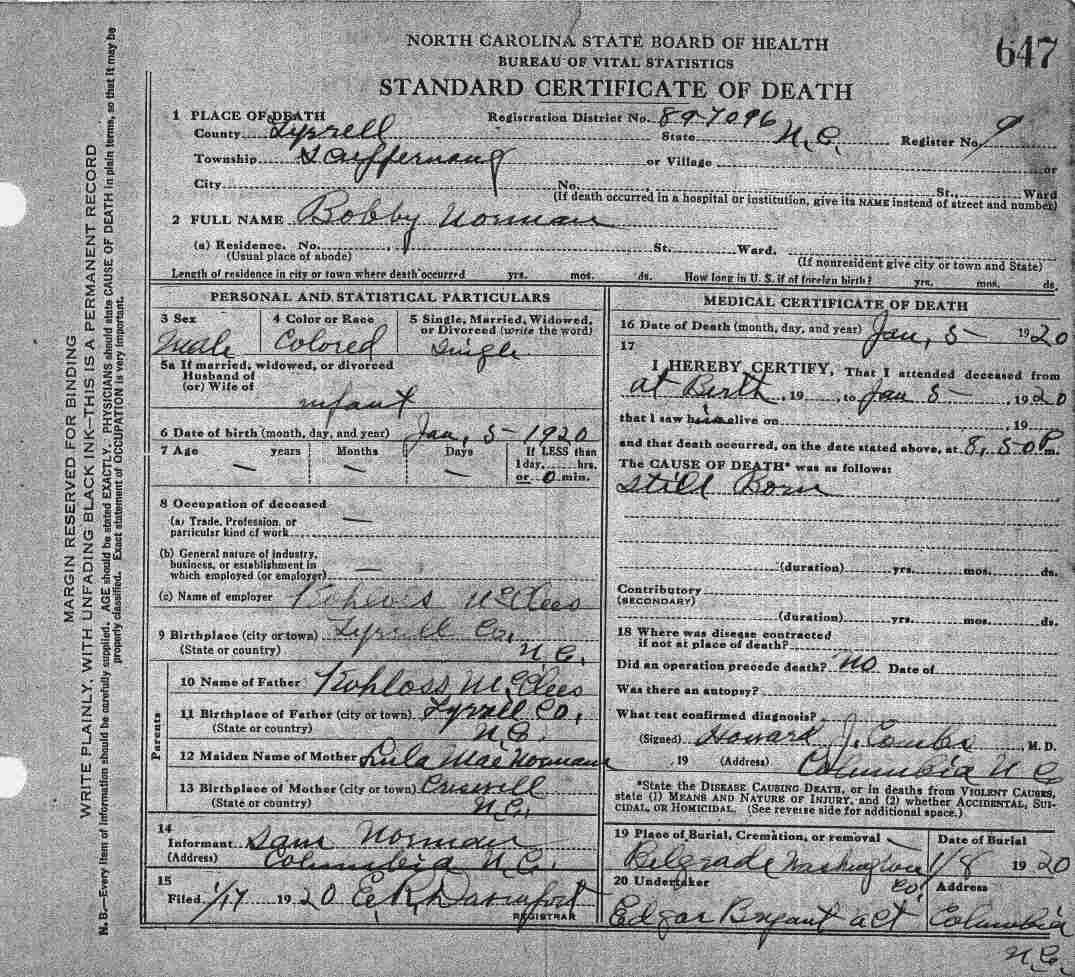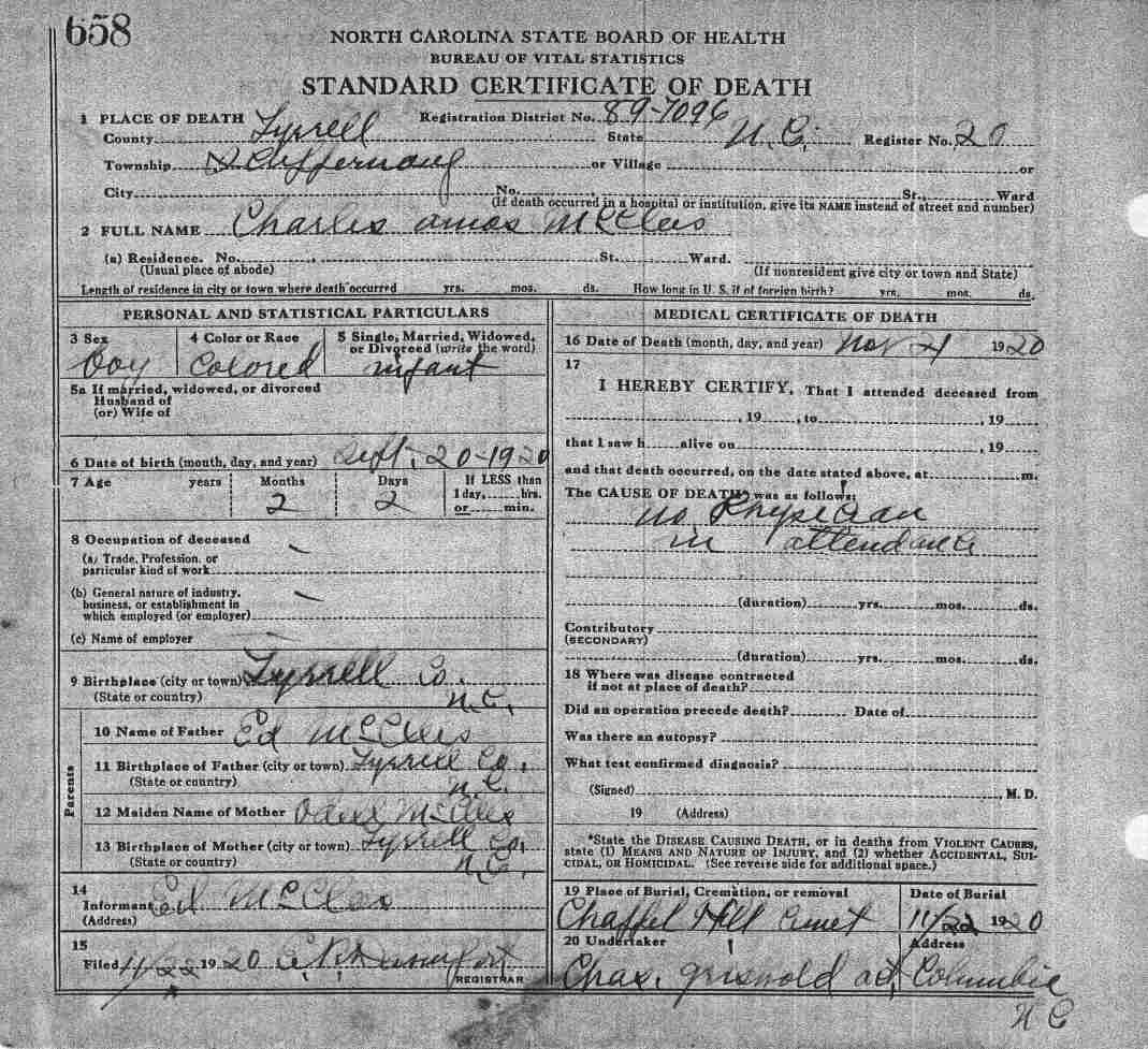 | McClees, [Infant] | | Deceased | 1915 | 1 | 575 |