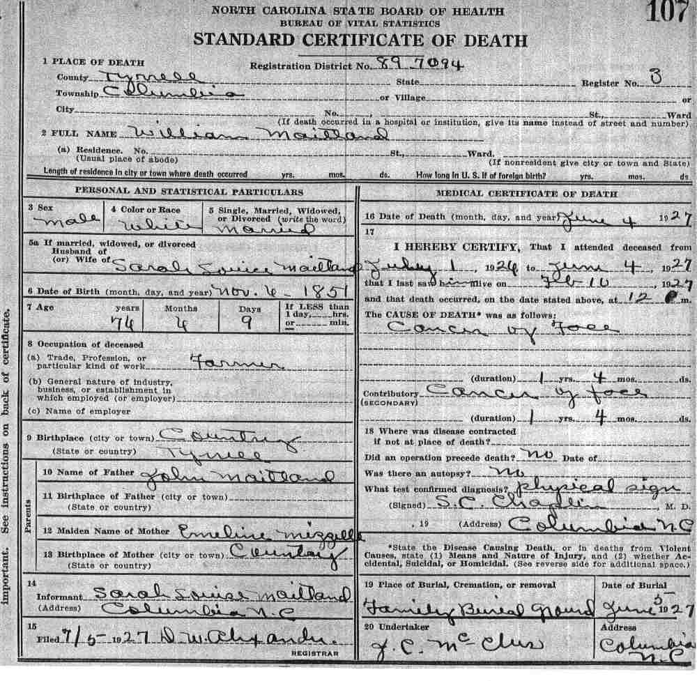| Maitland, Wm. | | Father | 1923 | 1 | 386 |