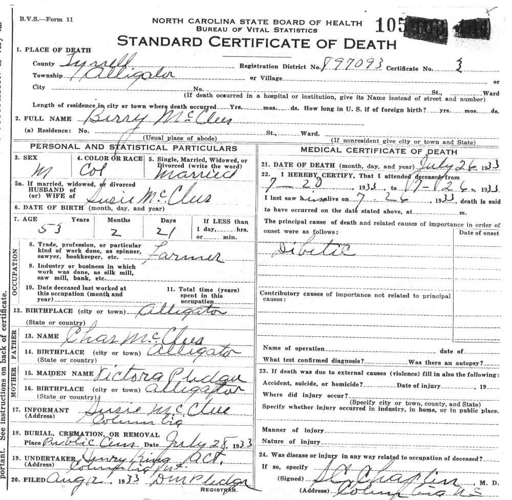 | McClees, Amos | | Informant | 1922 | 1 | 685 |