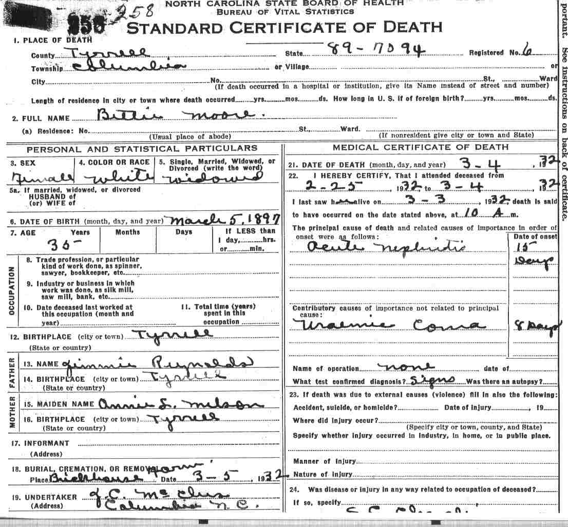 | McCabe, Bartless Annus (?) | Married | Deceased | 1930 | 3 | 189 |