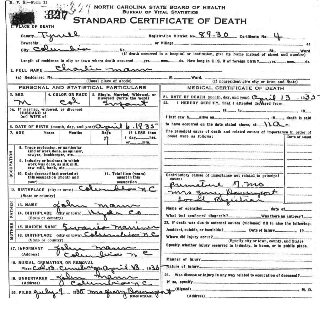 | Mann, Caroline Virginia | Married | Deceased | 1930 | 3 | 198 |