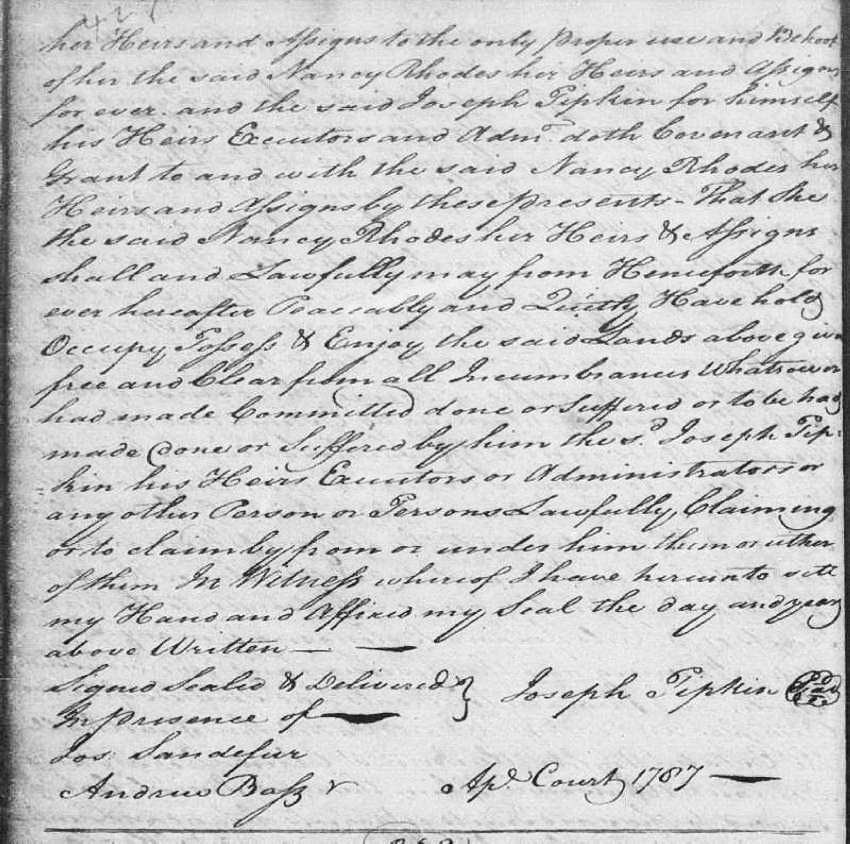and Nancy Rhodes, wife of Wm Rhodes, dau. of said Joseph Pipkin,