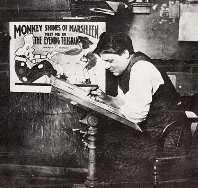 Jennett at his drawing board at the New York "Evening Telegram" about 1907. The poster advertises his THE STATE - Down Home in North Carolina - May 1977, Vol 44, No 12