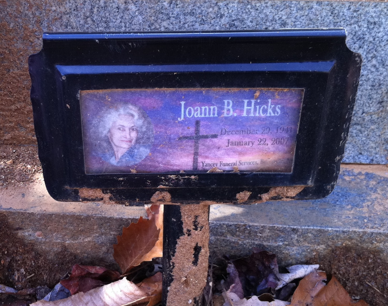 funeral marker J. Fender Dec 2011.